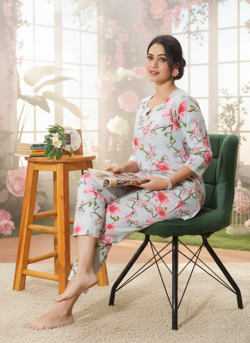 Apple Green Floral Cotton Coord...