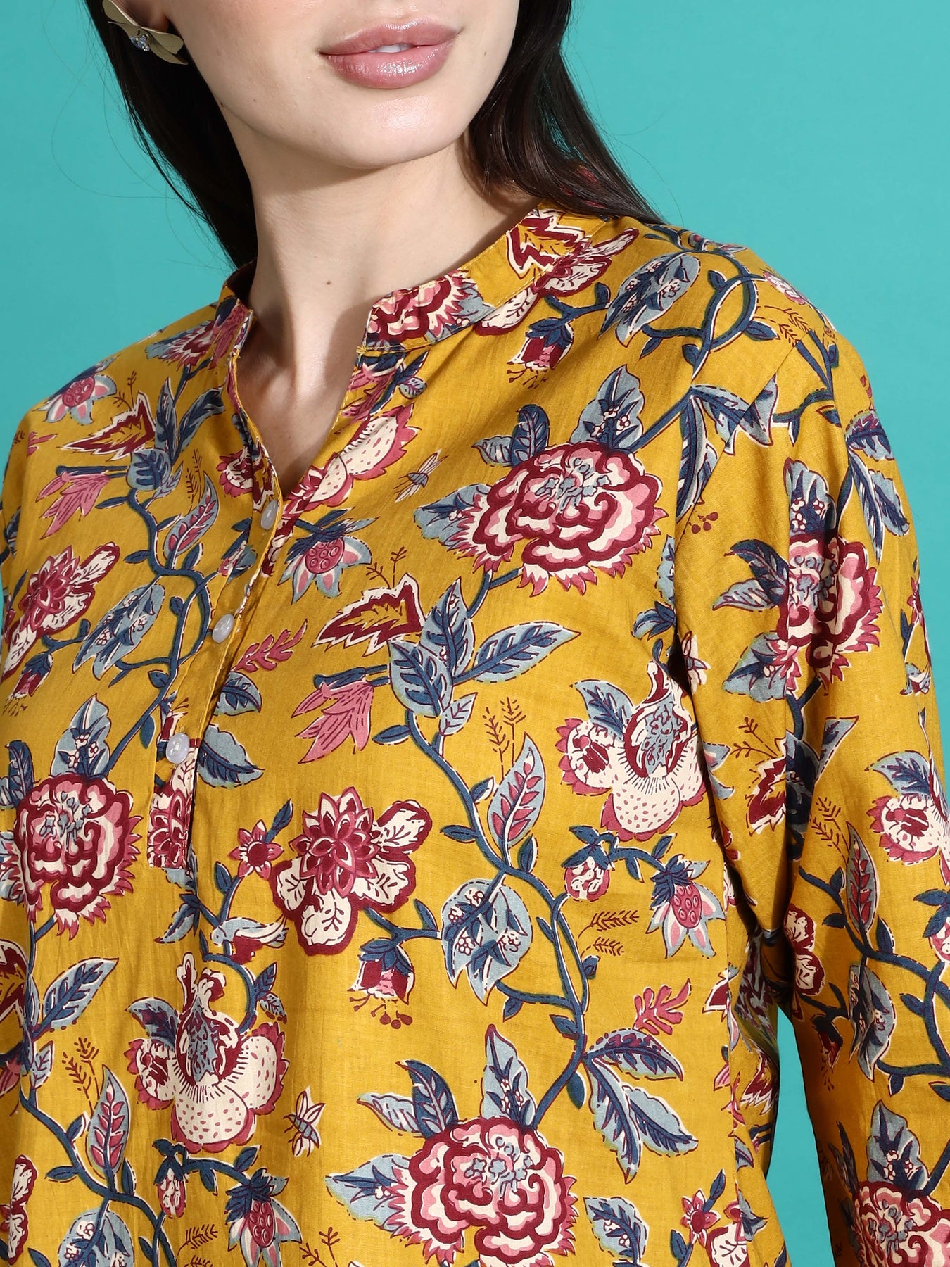 Marigold Yellow Floral Cotton Co-ord Set for Women