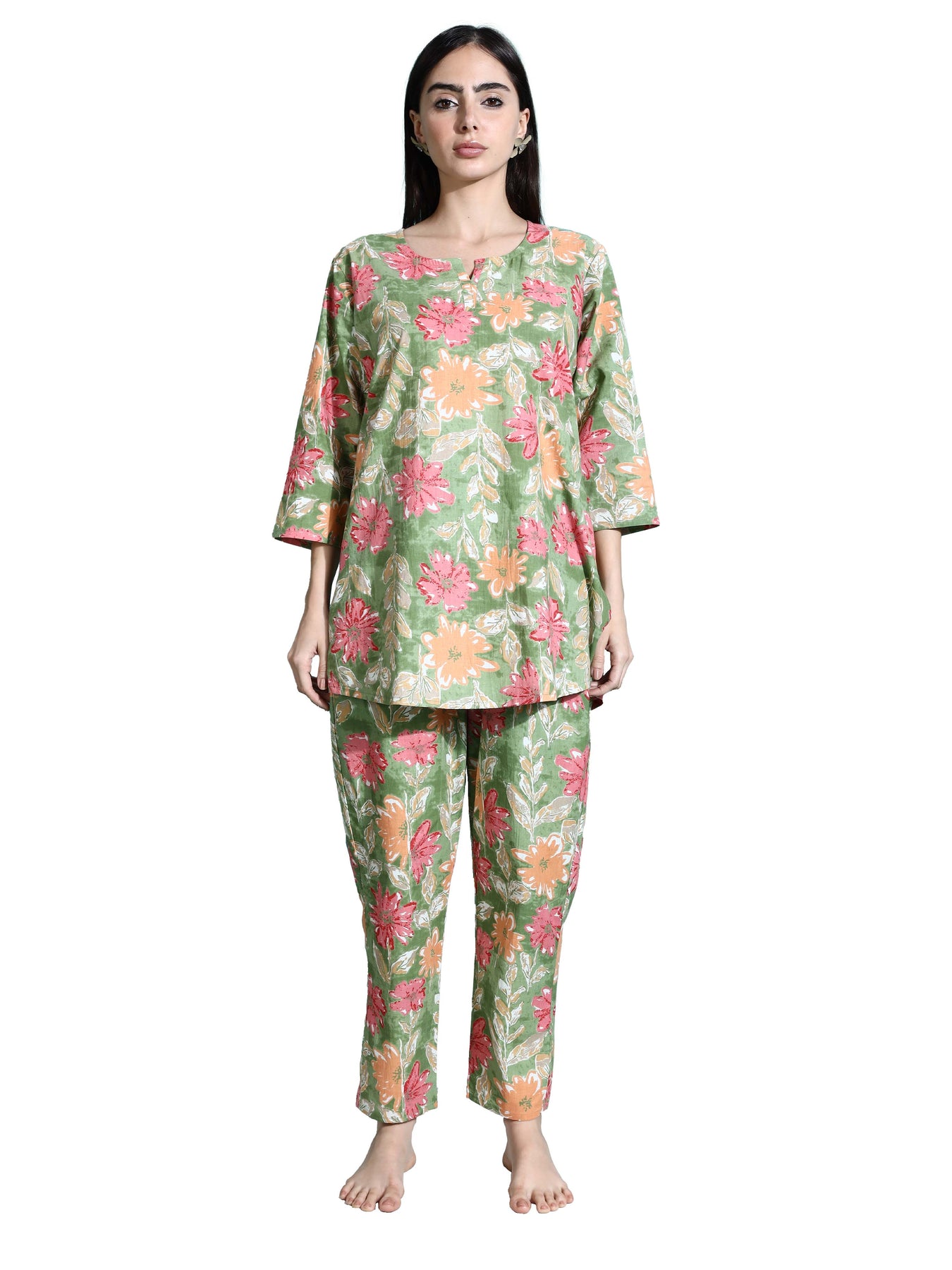 Green Orange Cotton Co-ord Set for Women Comfortable Everyday Loungewear