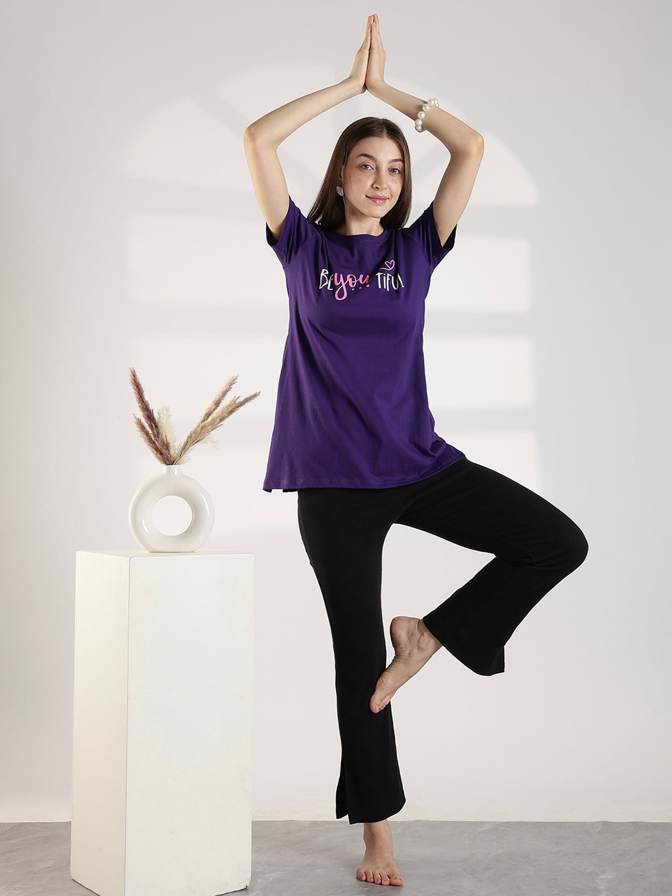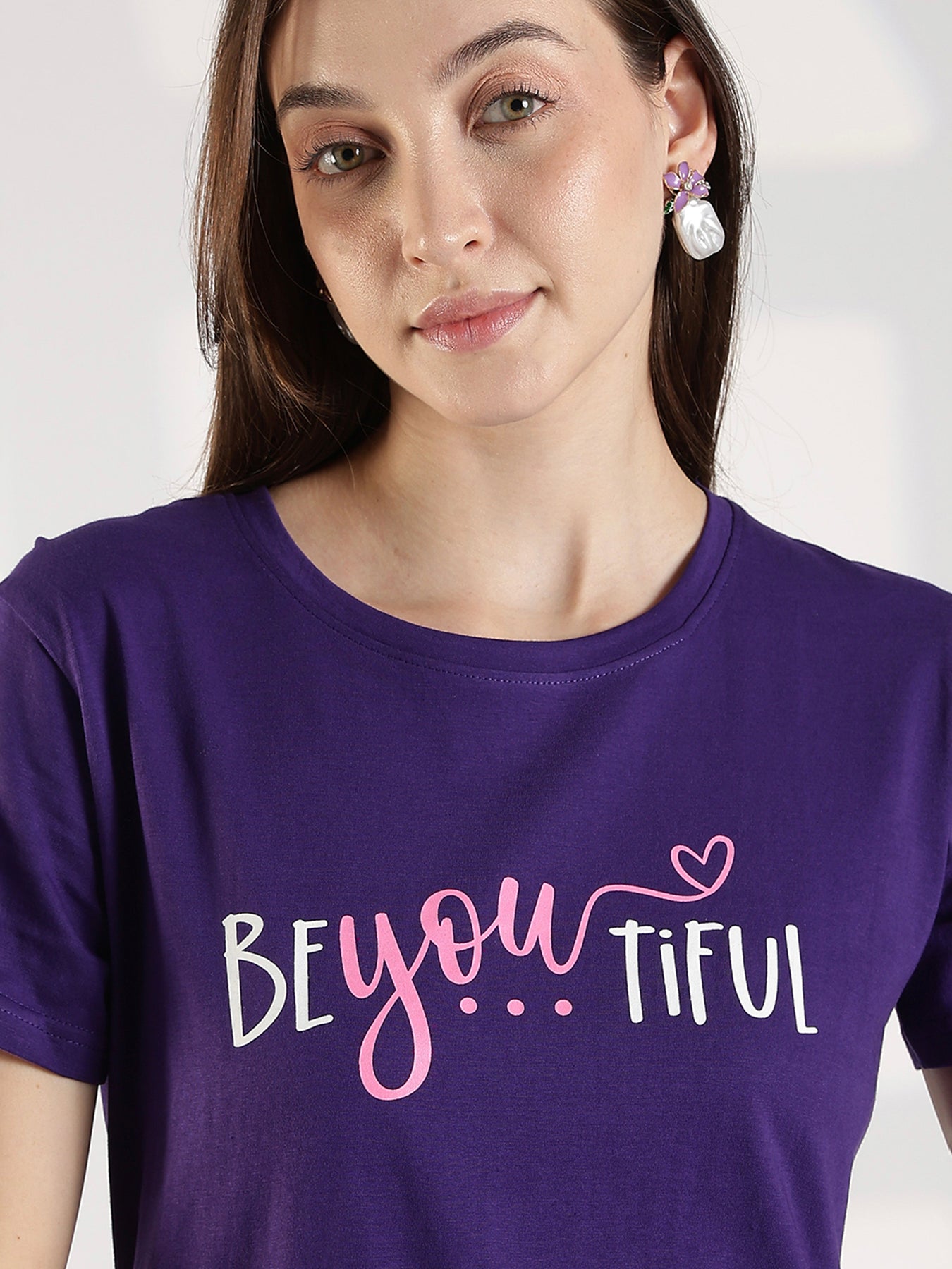 Ultra Violet Cotton Long T Shirt for Women with Pocket