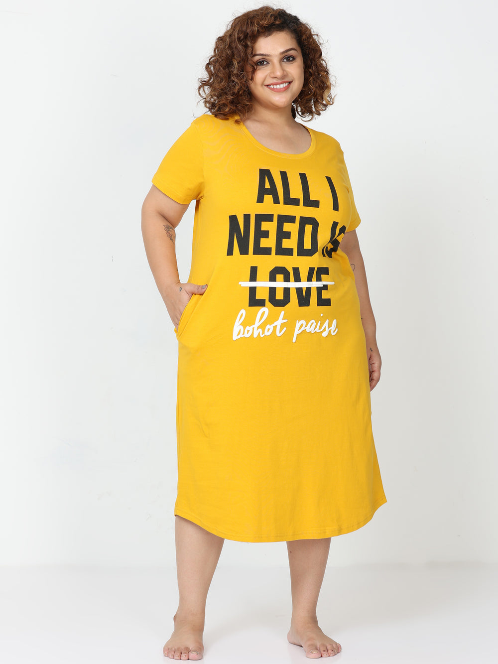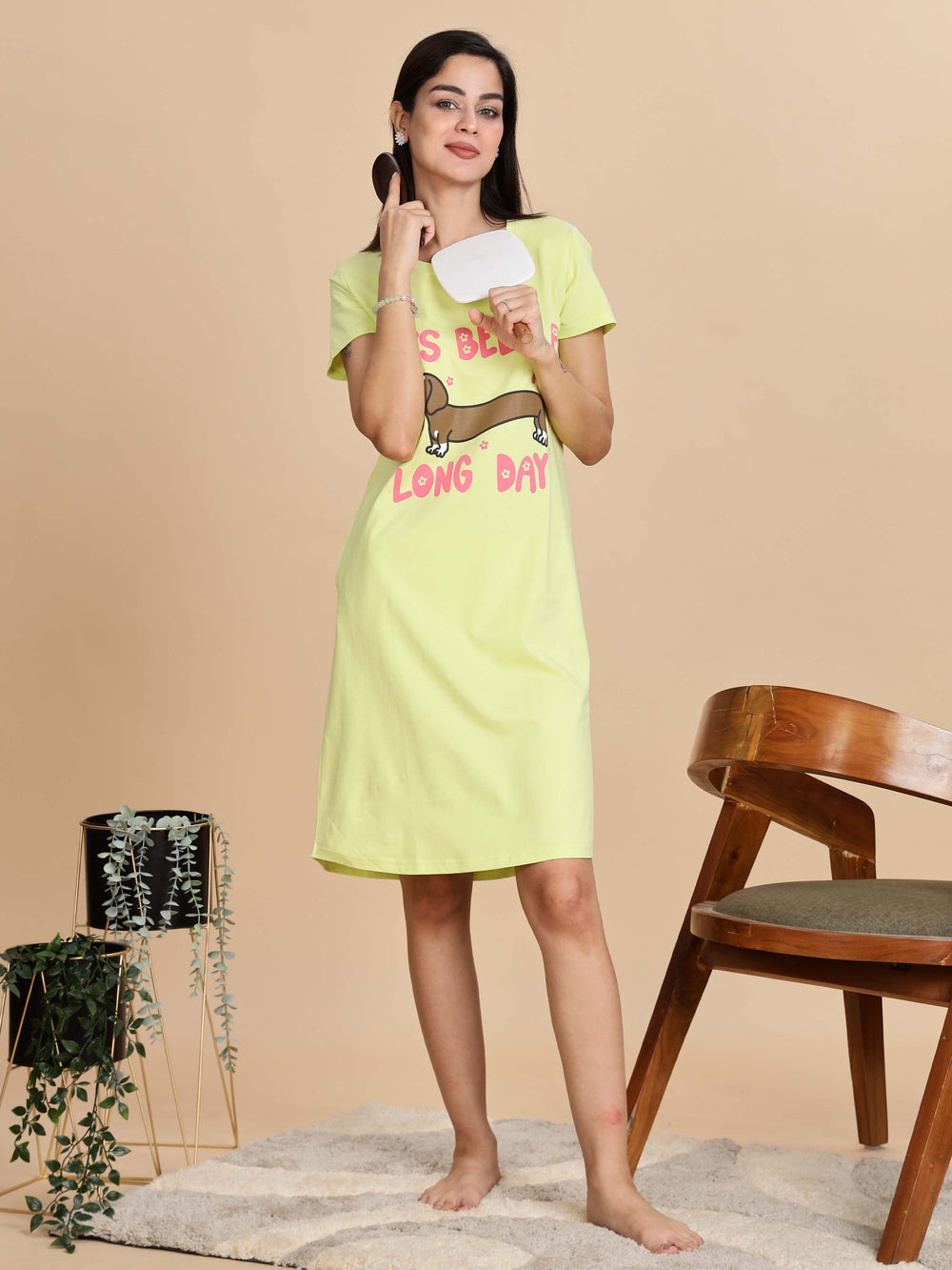 Vibrant Fire Yellow Cotton Printed Short Nighty for Women