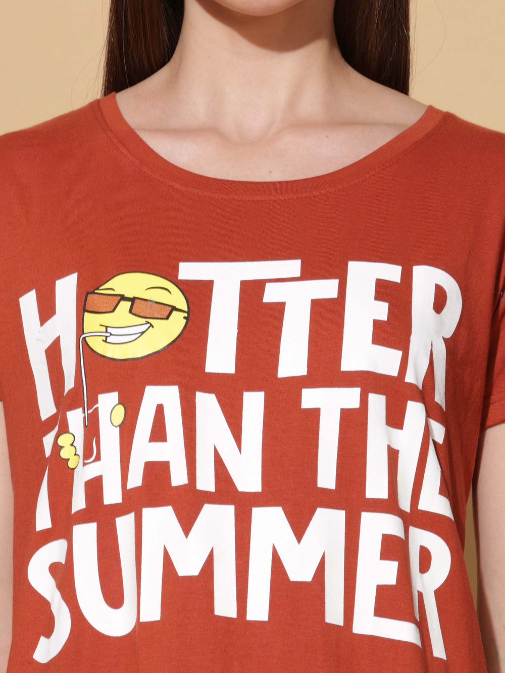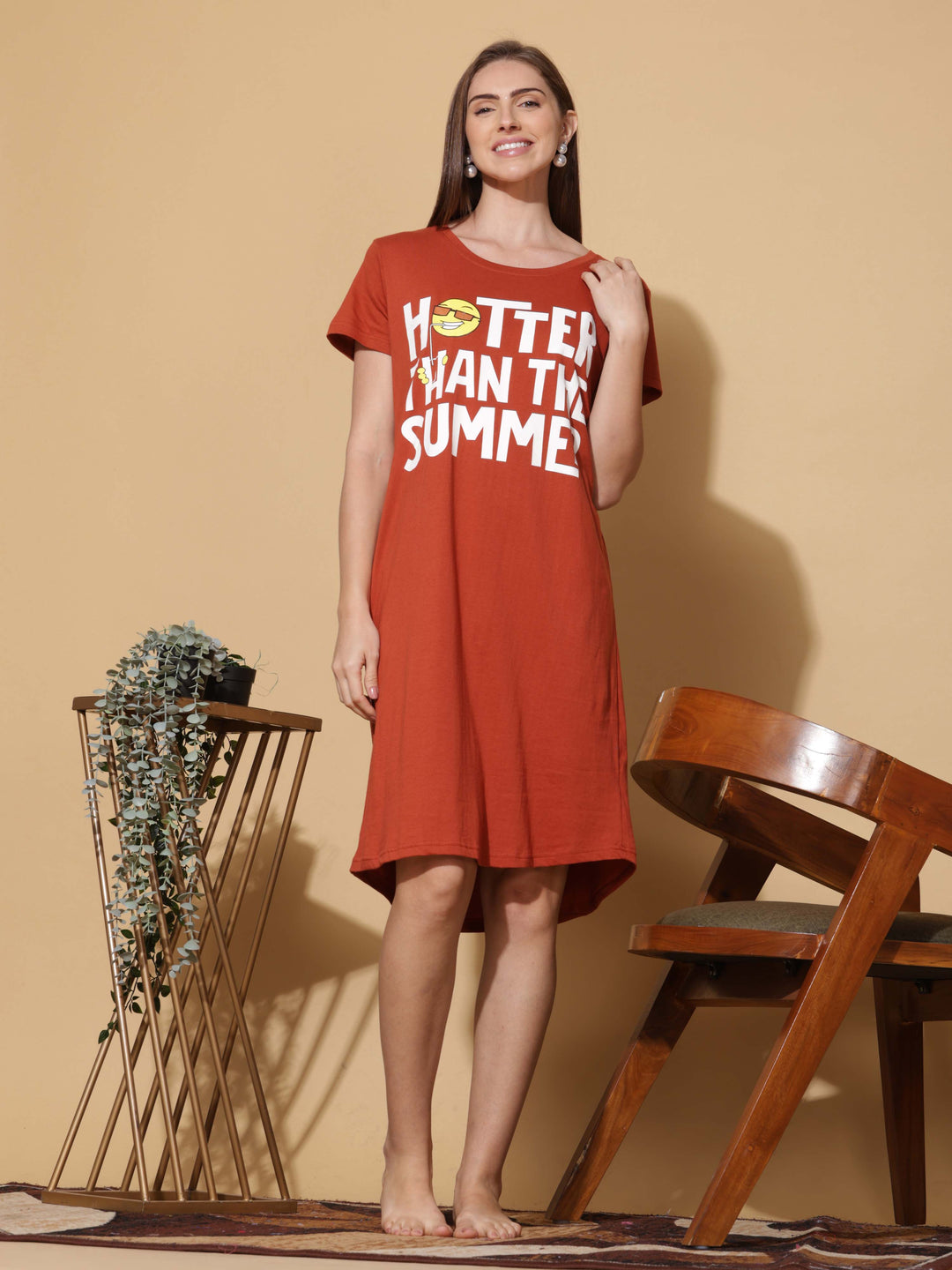Relaxed Fit Sunset Orange Cotton Short Nightdress for Women
