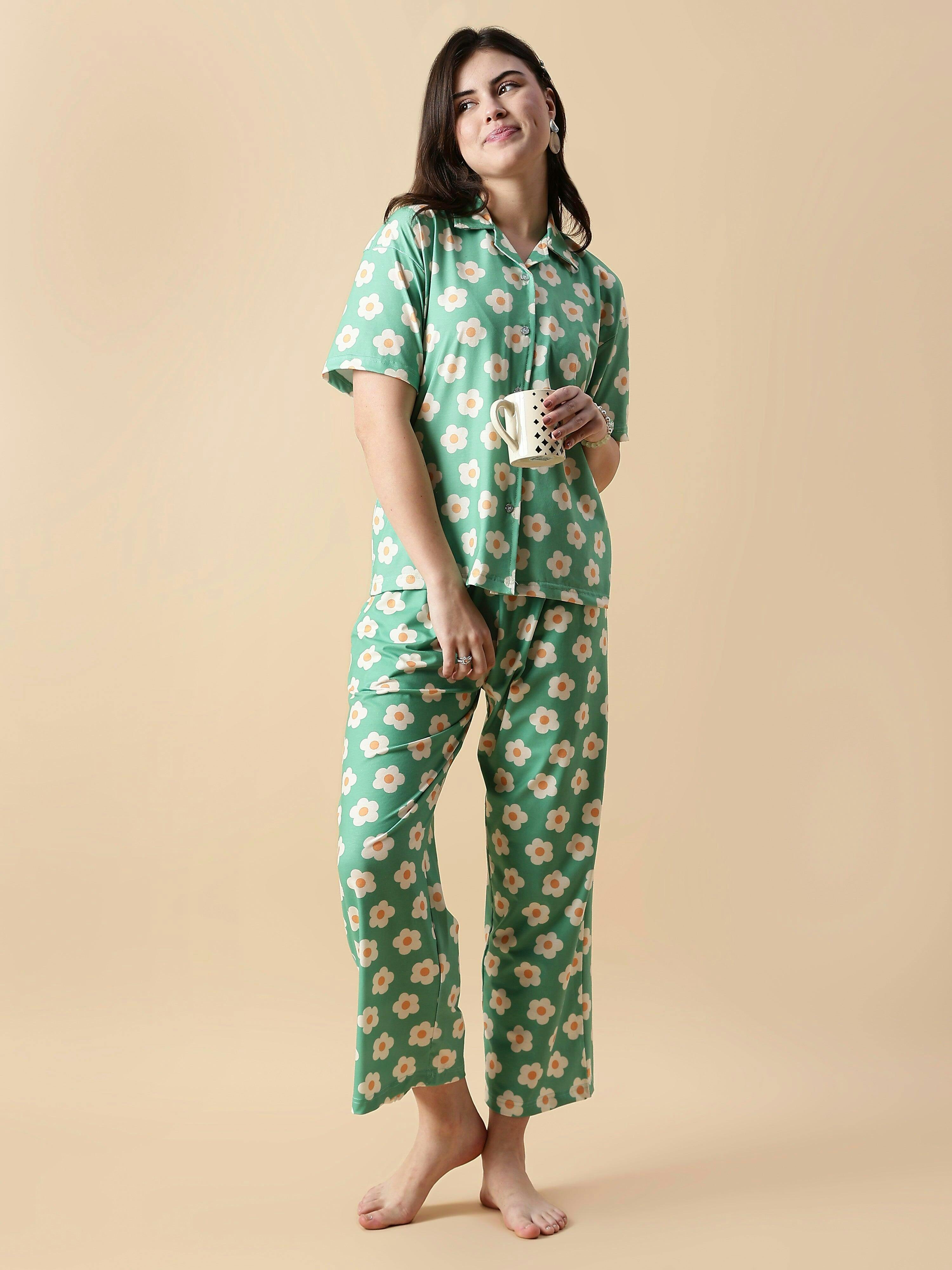 Flower Power Green Daisy Print Soft Loungewear Set