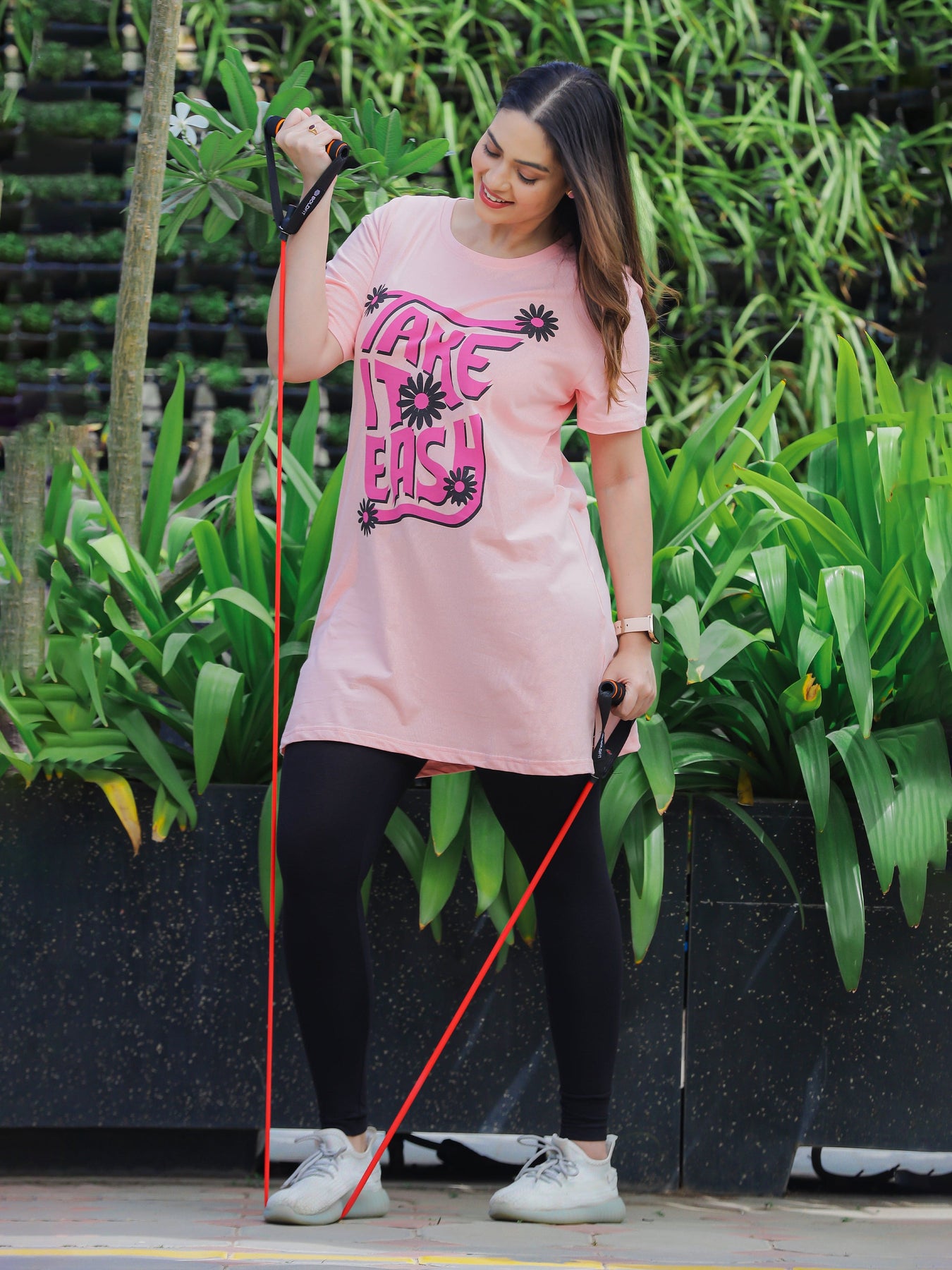Light Pink Casual Long T-Shirt for Women with Side Pocket