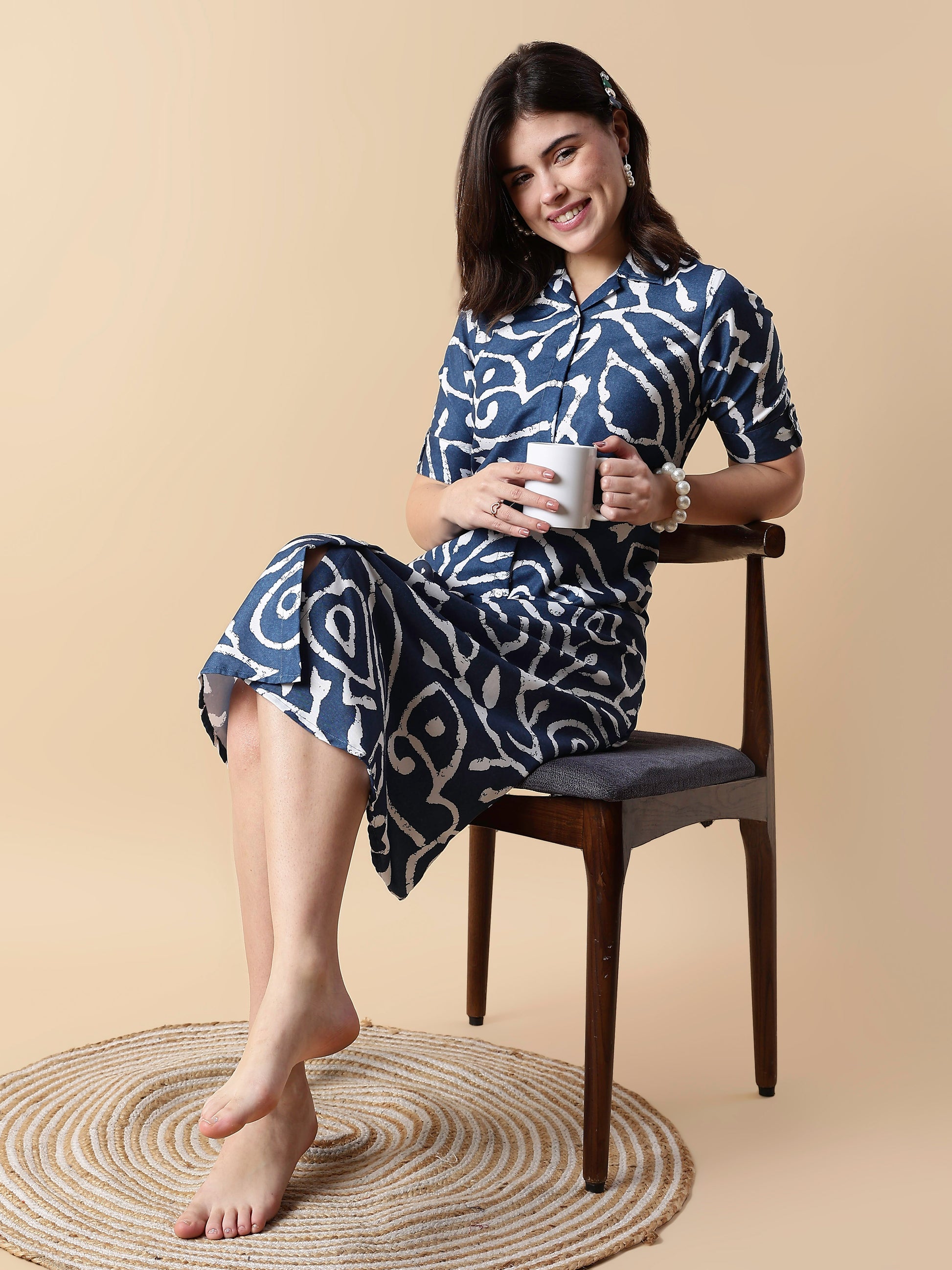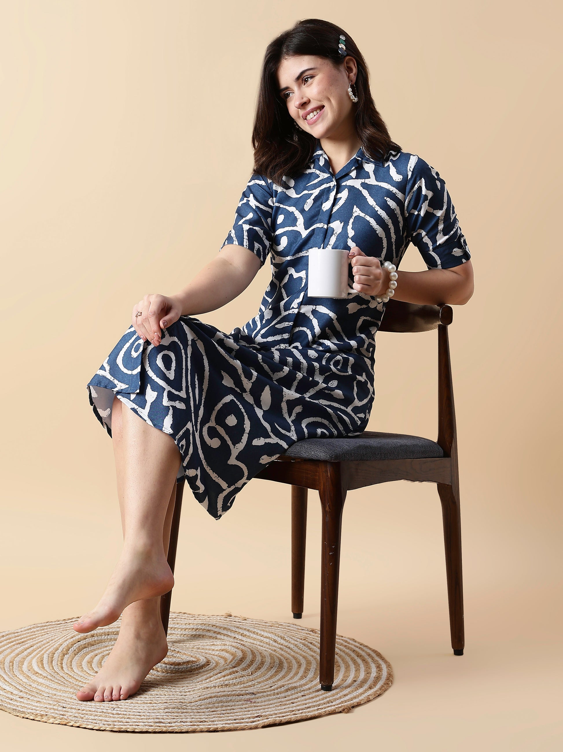 Indigo Doodles Aesthetic Rayon Nighty for Teen Girls