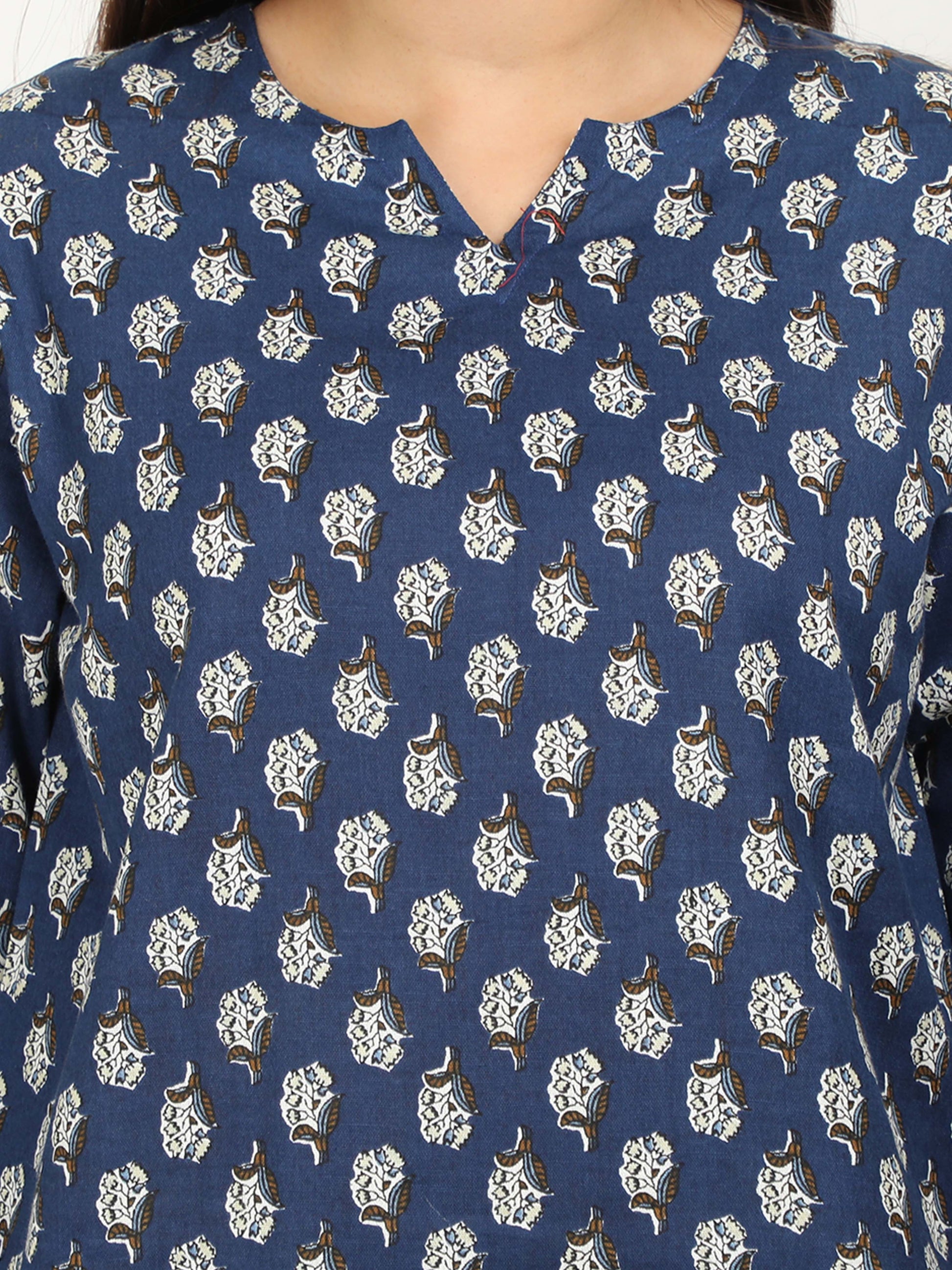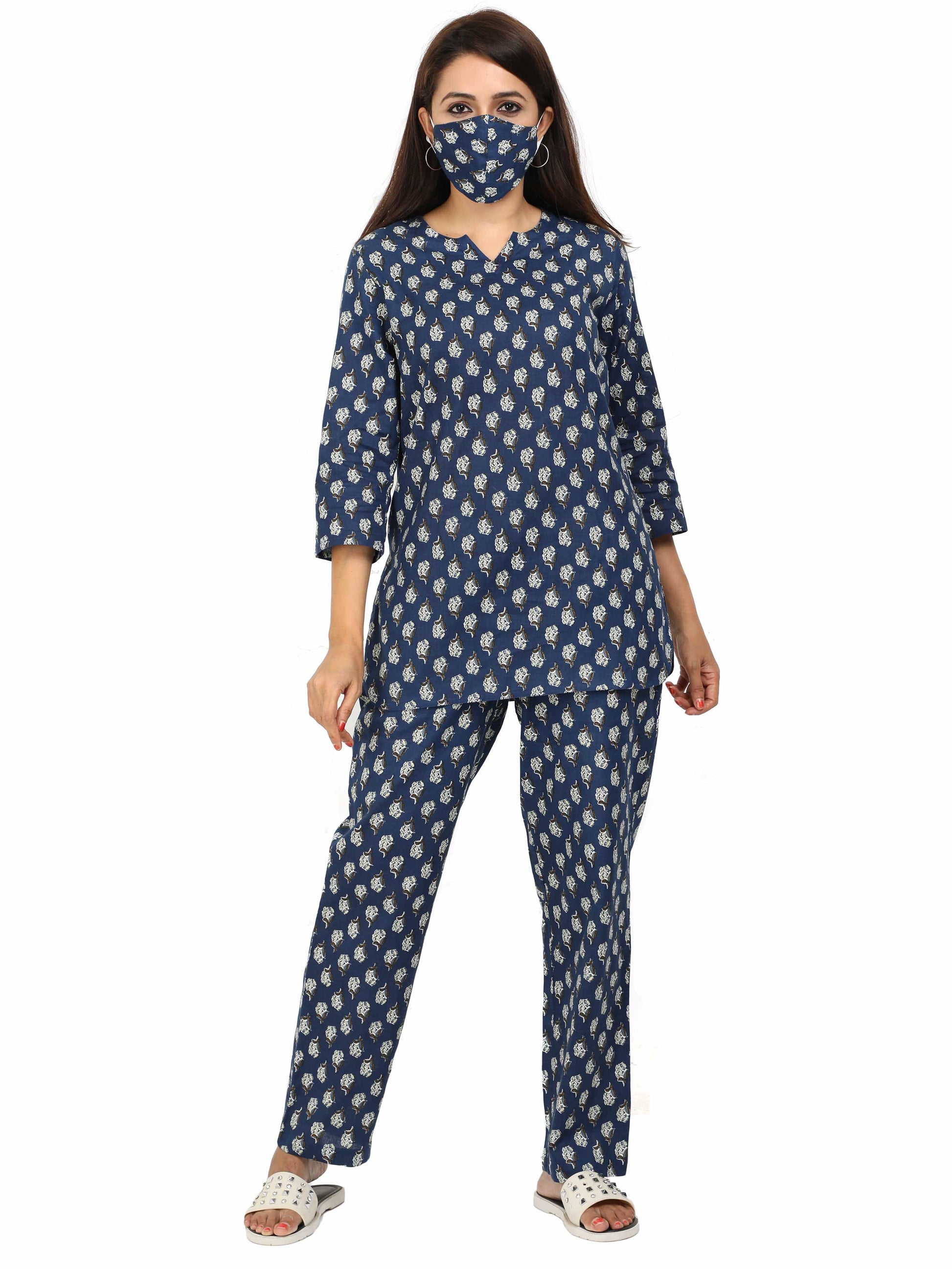 Ink Blue Pure Cotton Night Suit for Women Relaxed Fit Coord Set