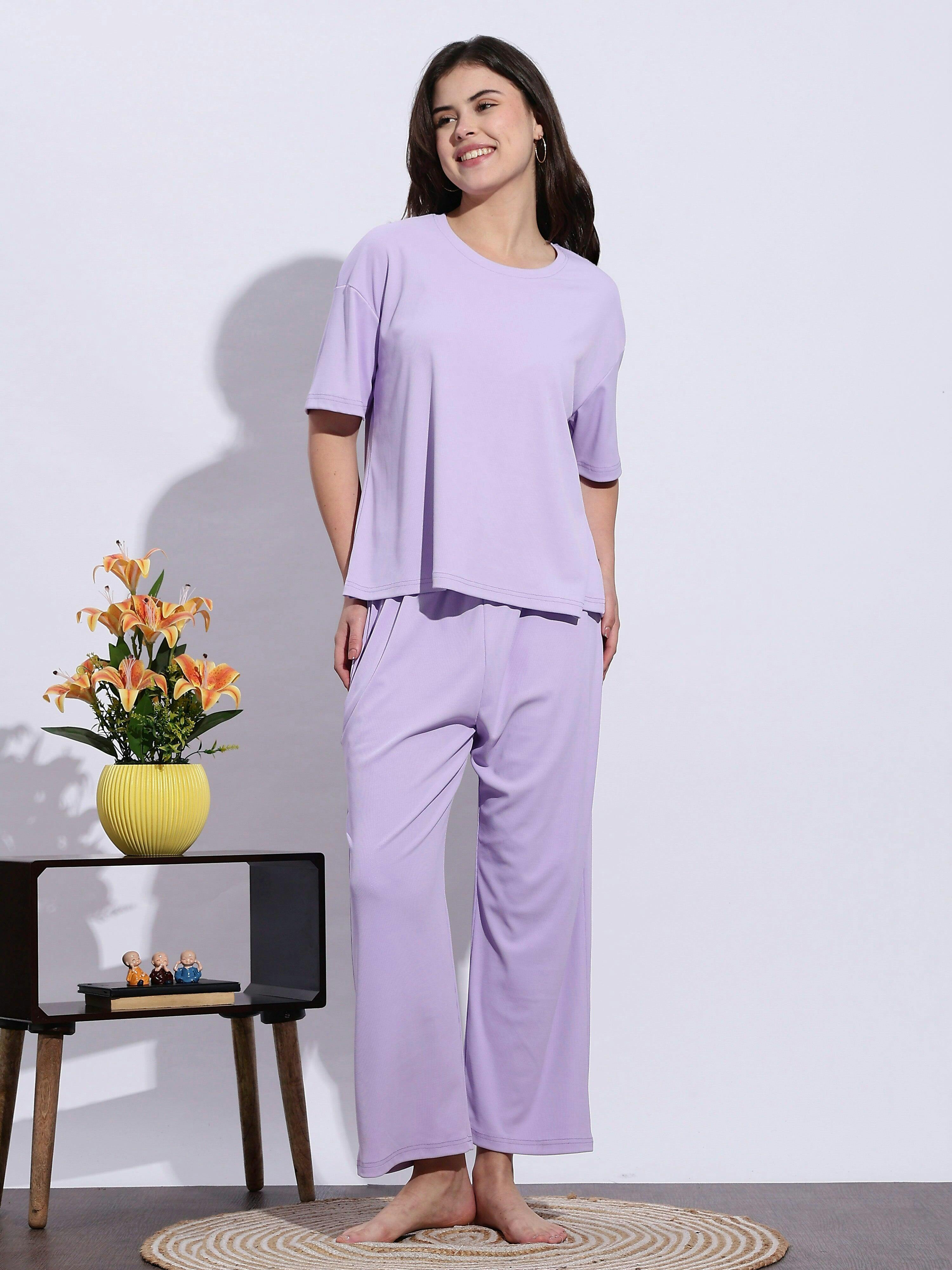 Lavender Mist Soft-Rib Solid PJ And Night Suit Set – Everyday Comfort