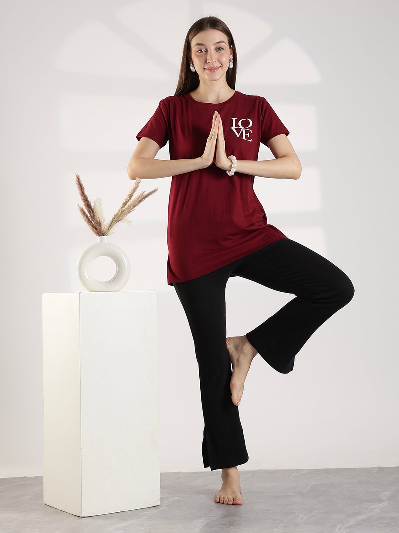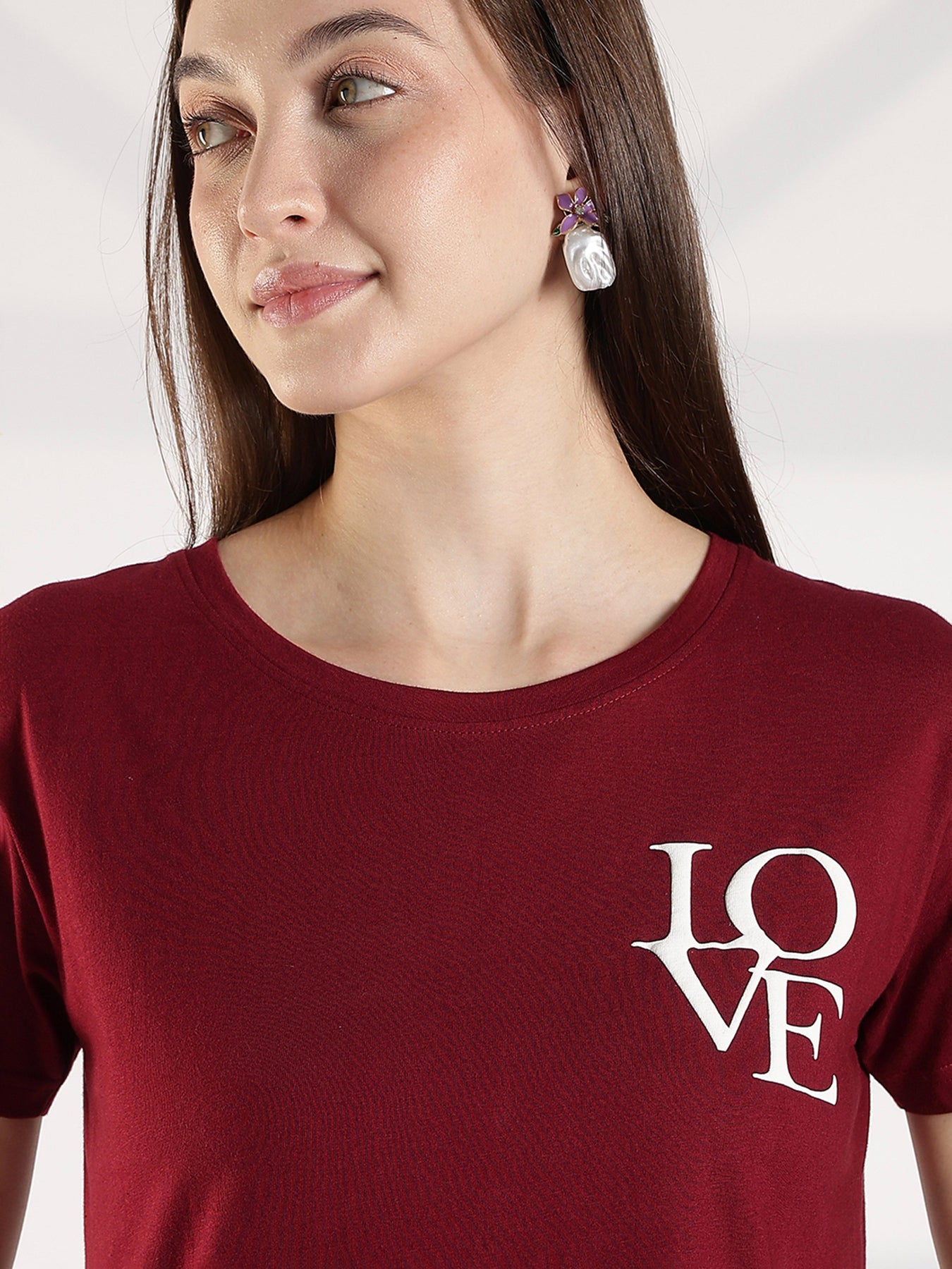 Maroon Cotton Long T Shirt for Women with Pocket