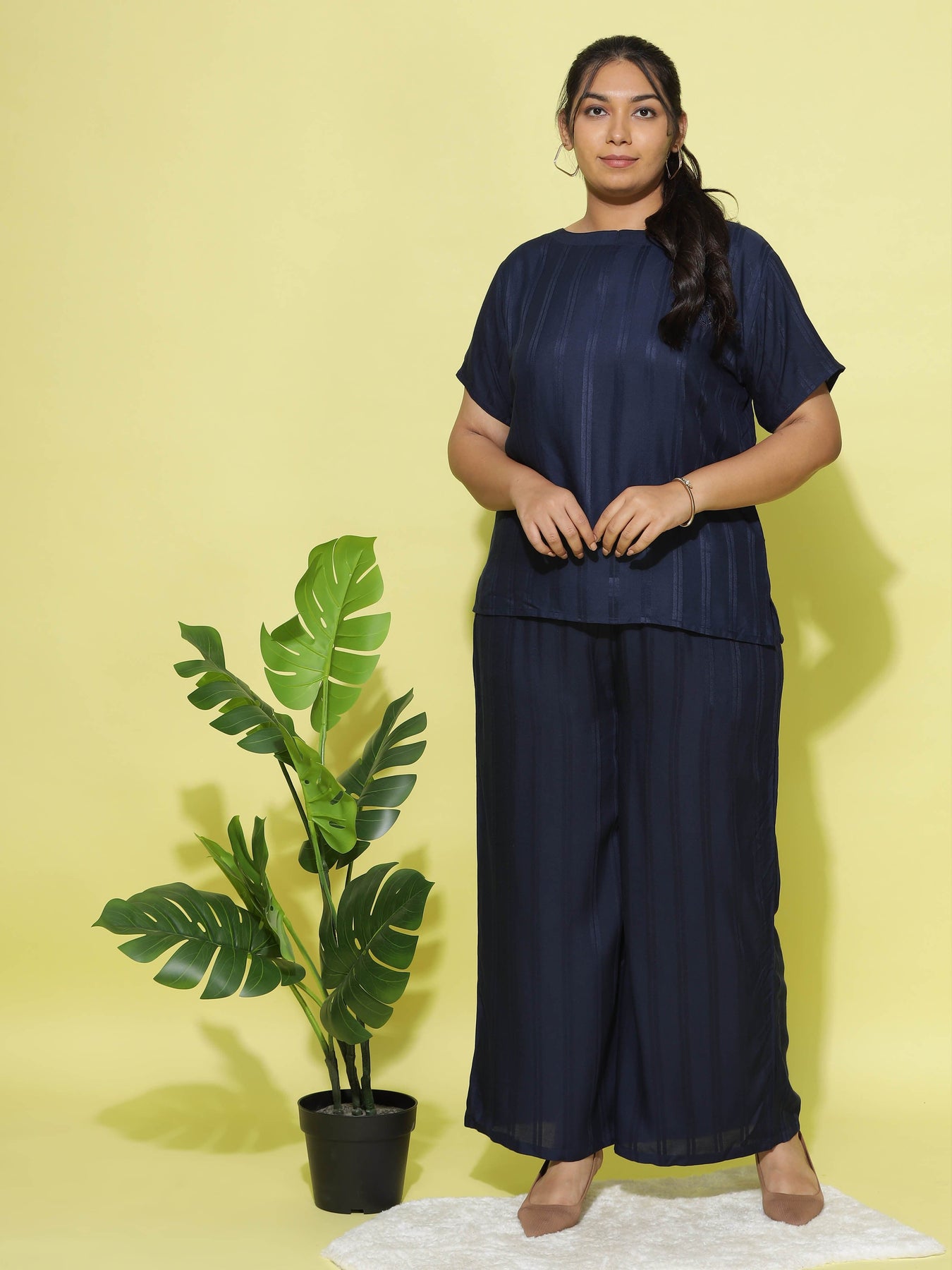 Midnight Navy Round Neck Coord Sets for Women with Relaxed Fit and Subtle Texture