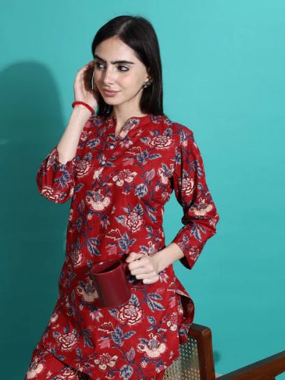 Sunset Red Pure Cotton Coord Set Tailored for Comfort and Style