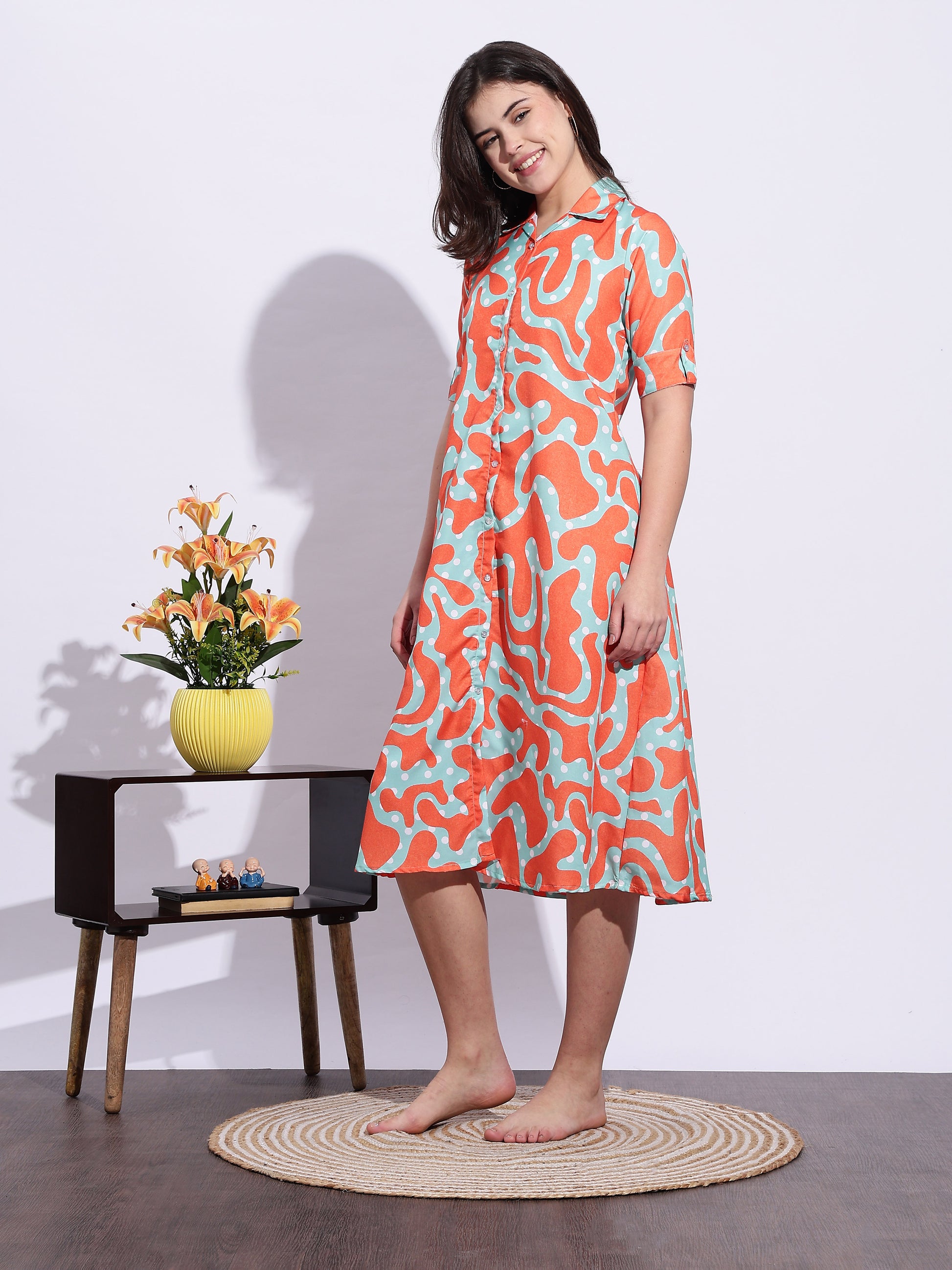 Zest Glow Chill Pop Edit – Printed A-Line Short Nighty for Teens